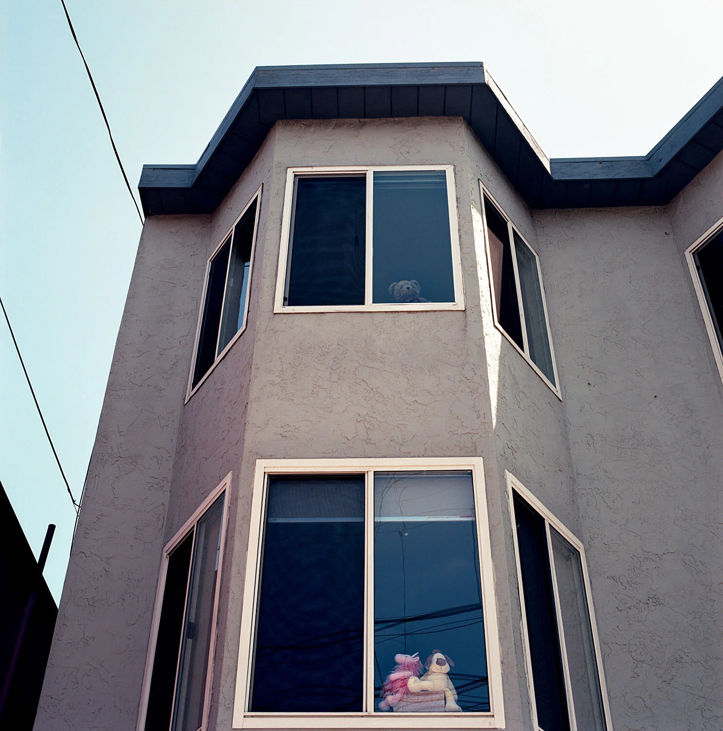 In the course of a few minutes these cats exchanged places. In those same few minutes I walked up and down the block, changed the film in my film back. Maybe that’s why the house is two different shades of green. Maybe not. I like knowing both cats saw me. I like knowing I was sighted (probably too much of a stretch to say “noted” - they are cats, after all.) I feel connected to the indoor cat. I have become one.